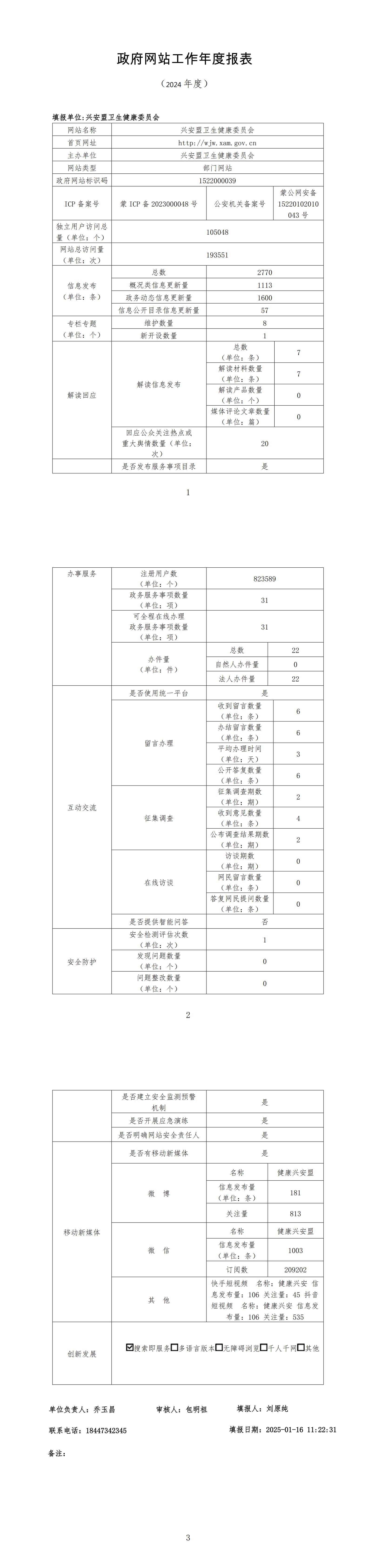 兴安盟卫生健康委员会网站工作年度报表(2024年度)