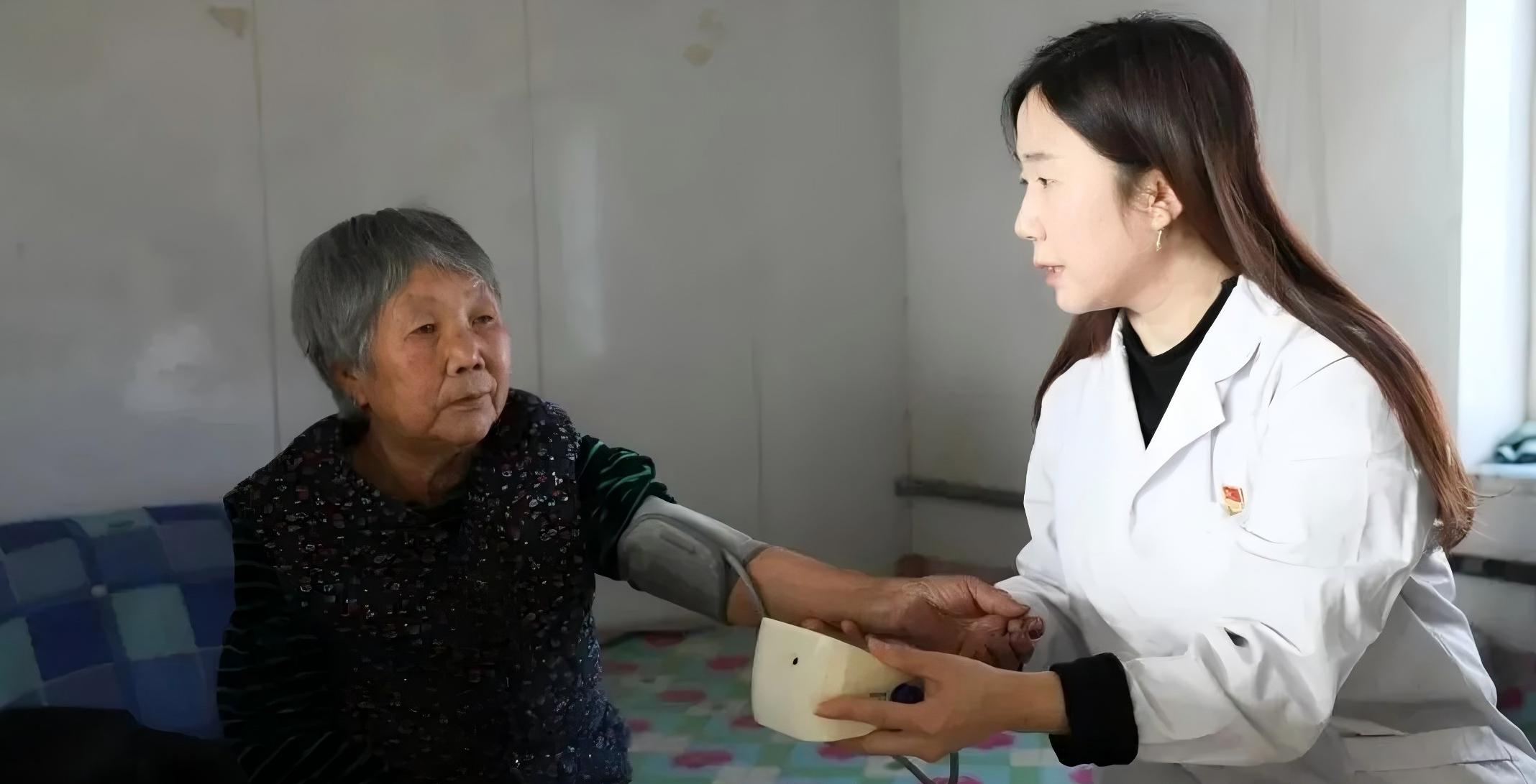 家庭医生上门做血压监测。