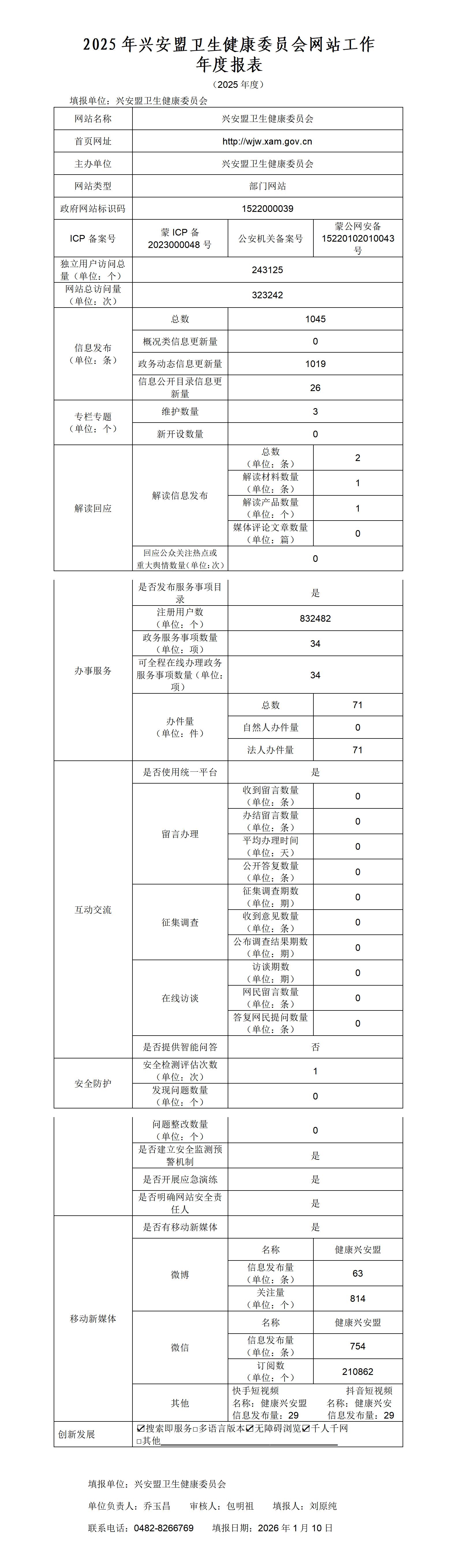 兴安盟卫生健康委员会网站工作年度报表(2025年度)