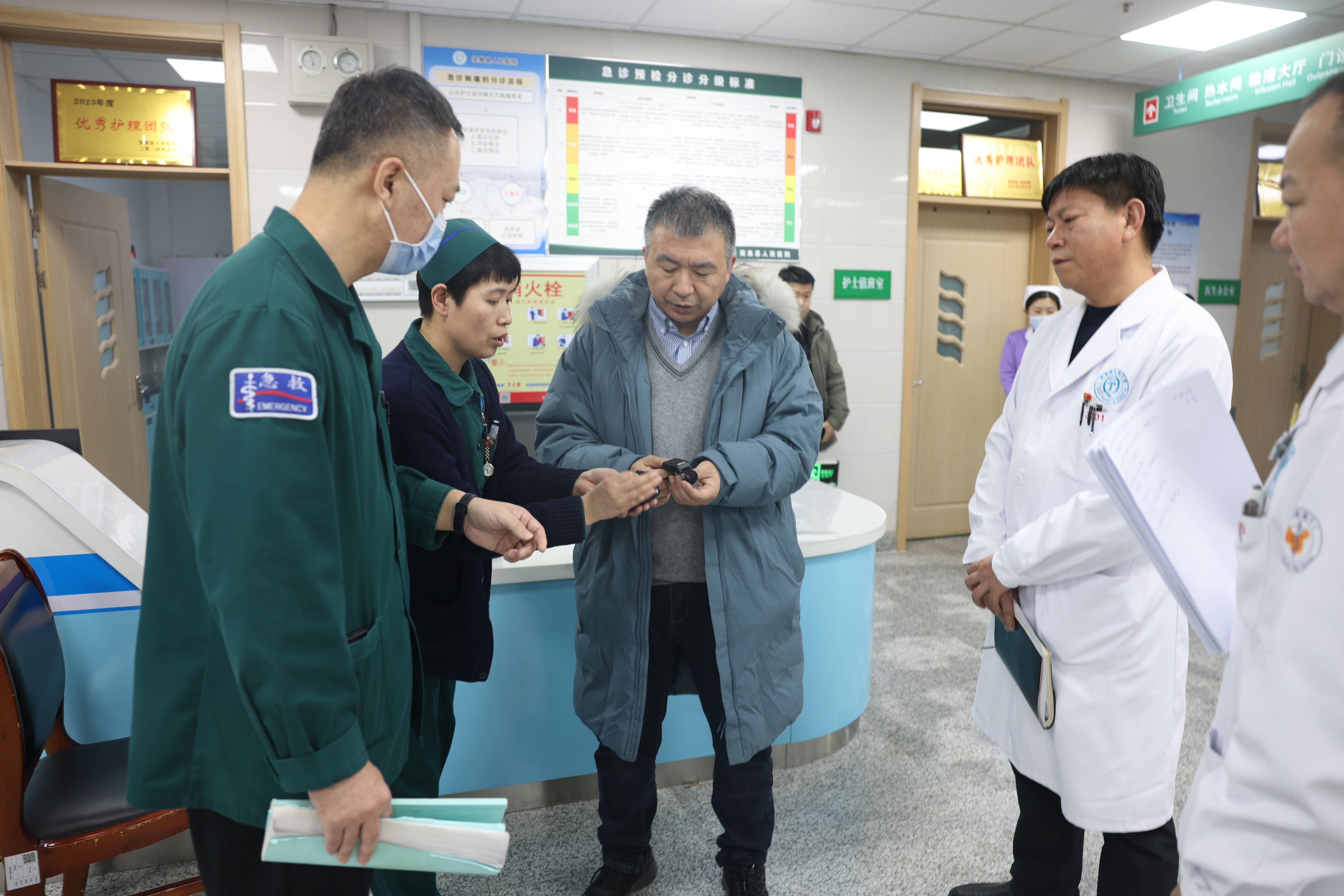 圆桌会议后,耿学峰教授深入医院心内科、急诊科开展实地考察。在诊疗一线,耿学峰教授通过查看功能分区布局、询问急救流程衔接、翻阅病例资料等方式,全面了解胸痛患者接诊、评估、救治全链条工作,针对标识指引、多学科协作响应等具体问题与现场医护人员展开即时交流,提出可落地的改进方案。