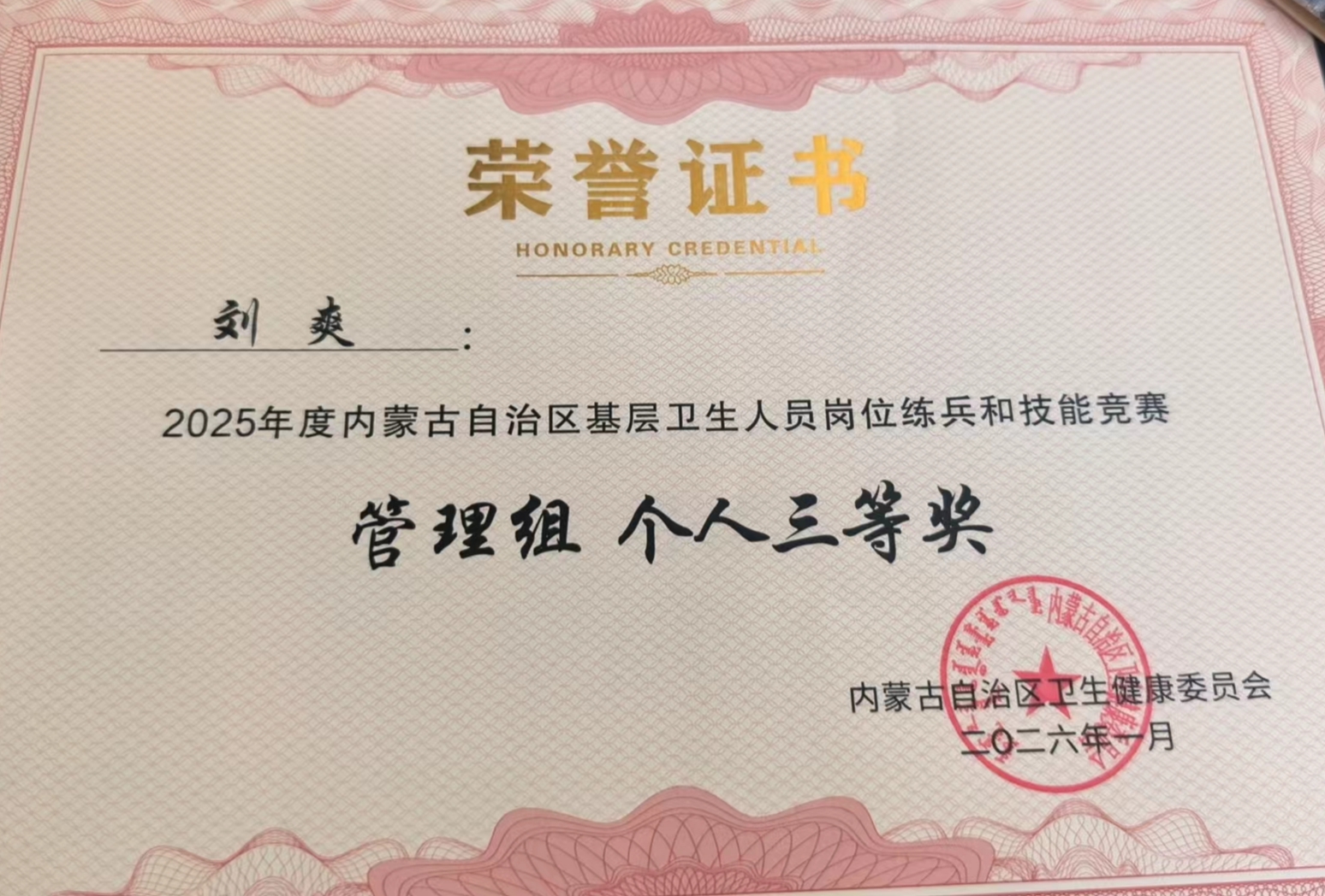 获得荣誉不仅是对突泉县卫生健康系统人才专业能力的充分认可,更是激励我们脚踏实地,奋发进取的强大动力。下一步,我们将继续锚定全县人民健康需求,努力提高医务人员专业素养,提升常见病、多发病的诊疗能力,不断增强群众获得感、满意度,为推动健康突泉建设贡献更大力量。
